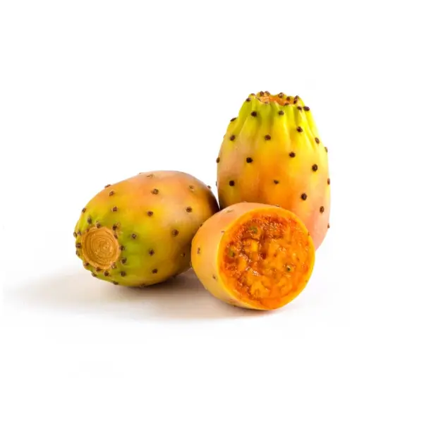 I fichi d’India hanno una forma ovale e sono caratterizzati da una buccia spessa e spinosa, che varia in colore dal giallo-verde al rosso intenso, a seconda della maturità e della varietà. All’interno, la polpa è succosa e dolce, solitamente di colore rosso, arancione o giallo, e contiene piccoli semi commestibili.